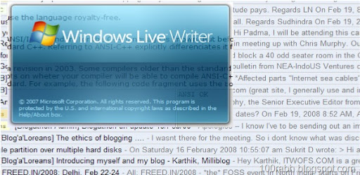 Coming back to today. We all must have used the Windows Live Writer or other applications. If u havnt then give them a try. This application has a nice splash screen which is semi-transparent. I wondered if there is some API being used for this purpose. But did not find anything. But one day I saw something which cleared up all my doubts.
